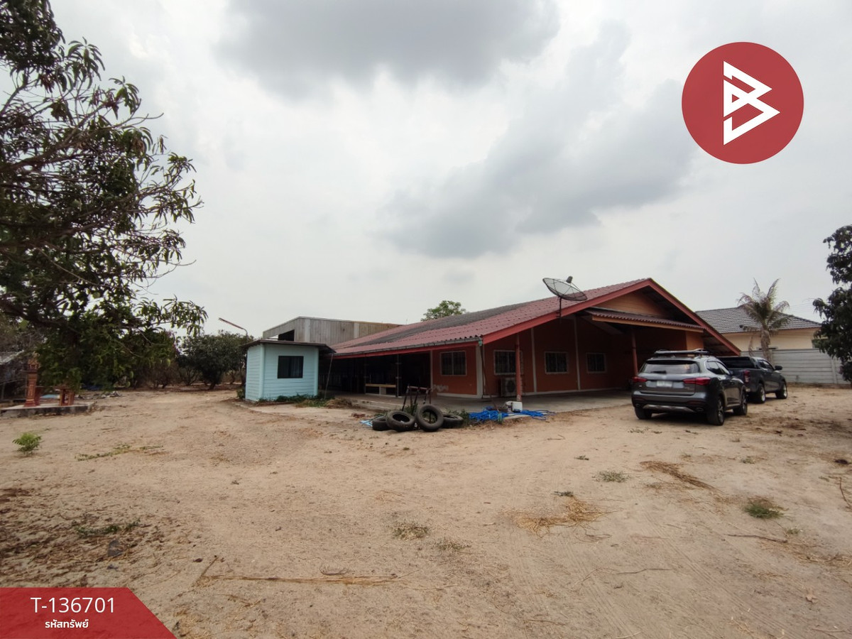 Land for sale with detached house and warehouse, area 6 rai 9 square wa, Phanat Nikhom District, Chonburi.