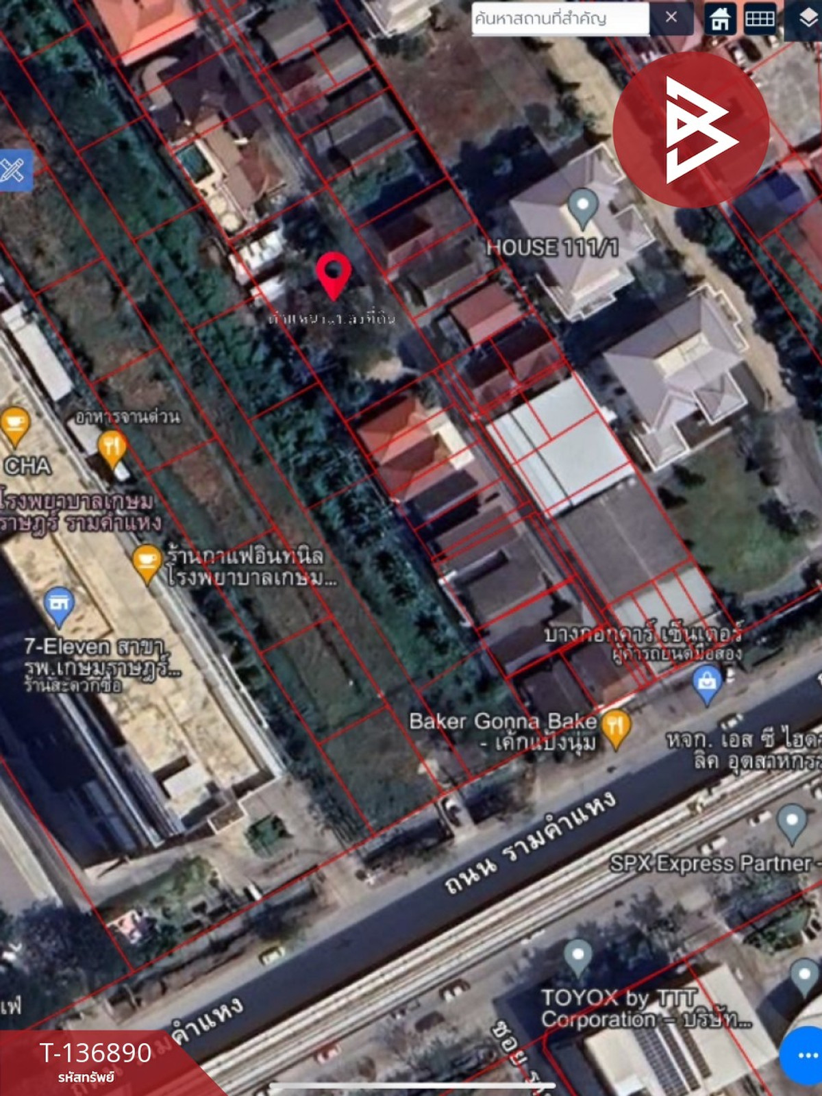 Soi Ramkhamhaeng 133, entering the alley approximately 70 meters, width approximately 36 meters, depth 20 meters