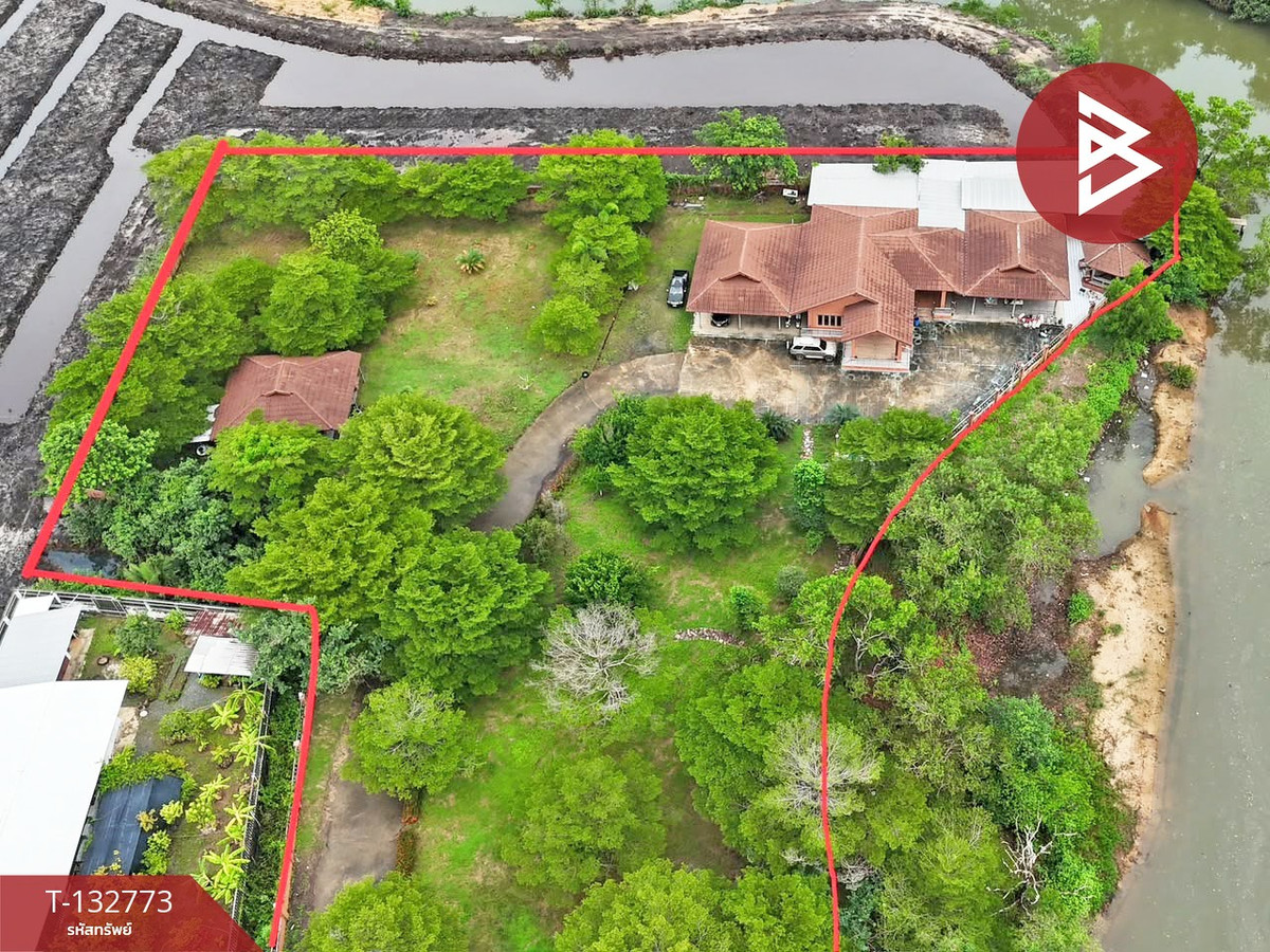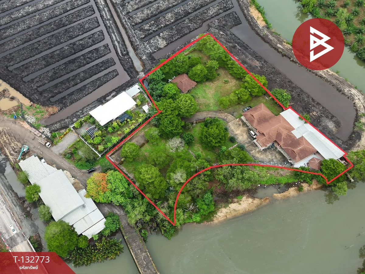 Single house for sale with land, area 2 rai 2 ngan 52.1 sq m, Wat Mai, Chanthaburi, next to the waterfront.
